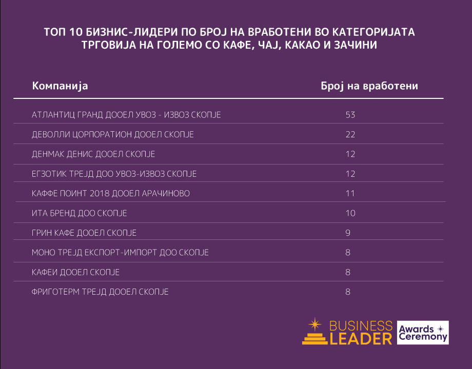 Секоја бројка има човечко лице. Во оваа индустрија, 153 луѓе се моторот зад зрната и шолјите, а АТЛАНТИЦ ГРАНД предничи и тука со 53 вработени. Тоа е тим што ја движи најголемата логистичка мрежа и осигурува дека кафето секогаш стигнува свежо и навреме.